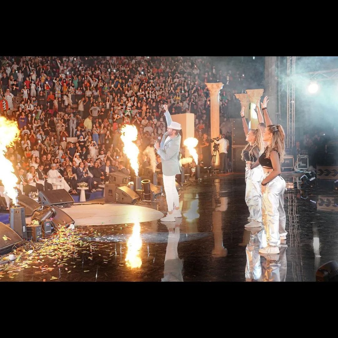 وأشعل تامر حسني الأجواء على خشبة المسرح الأثري بقرطاج في تونس، حيث أحيا حفل ختام الدورة 23 من المهرجان العربي للإذاعة والتلفزيون.
