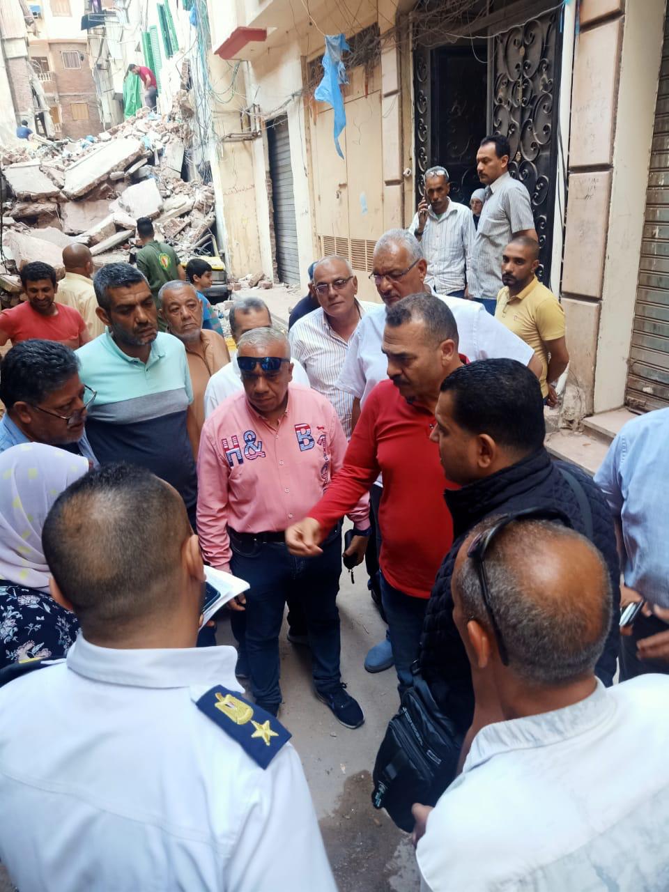 وأكد حبيب،أنه تم فصل جميع المرافق من الغاز والكهرباء والمياه ، وتم الدفع بجميع المعدات الثقيلة والسيارات اللازمة برفع الأنقاض الناجمة عن انهيار العقارين وعمل كوردون بجميع الشوارع المحيطة بالعقار حماية لأرواح المواطنين.