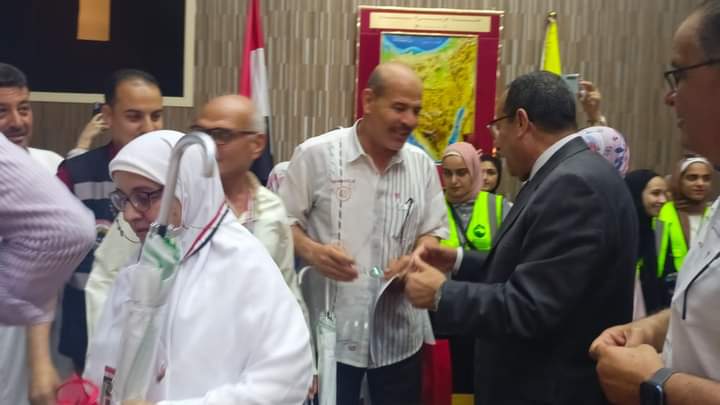 وقامت المحافظة بالتنسيق مع حزب مستقبل وطن بتوزيع المظلات الشمسية والوجبات الخفيفة والعصائر والمياه علي الحجاج قبل مغادرتهم مدينة العريش.
