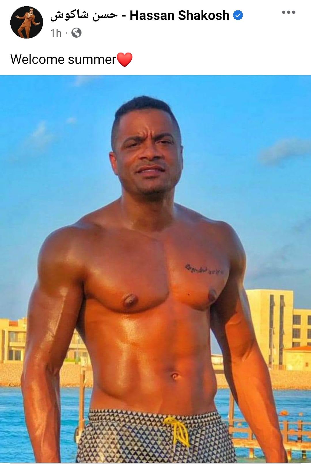 حرص مطرب المهرجانات حسن شاكوش، استعراض لياقته أثناء استمتاعه باجازته الصيفية، وذلك عبر صفحته على موقع التواصل الإجتماعي "فيسبوك".