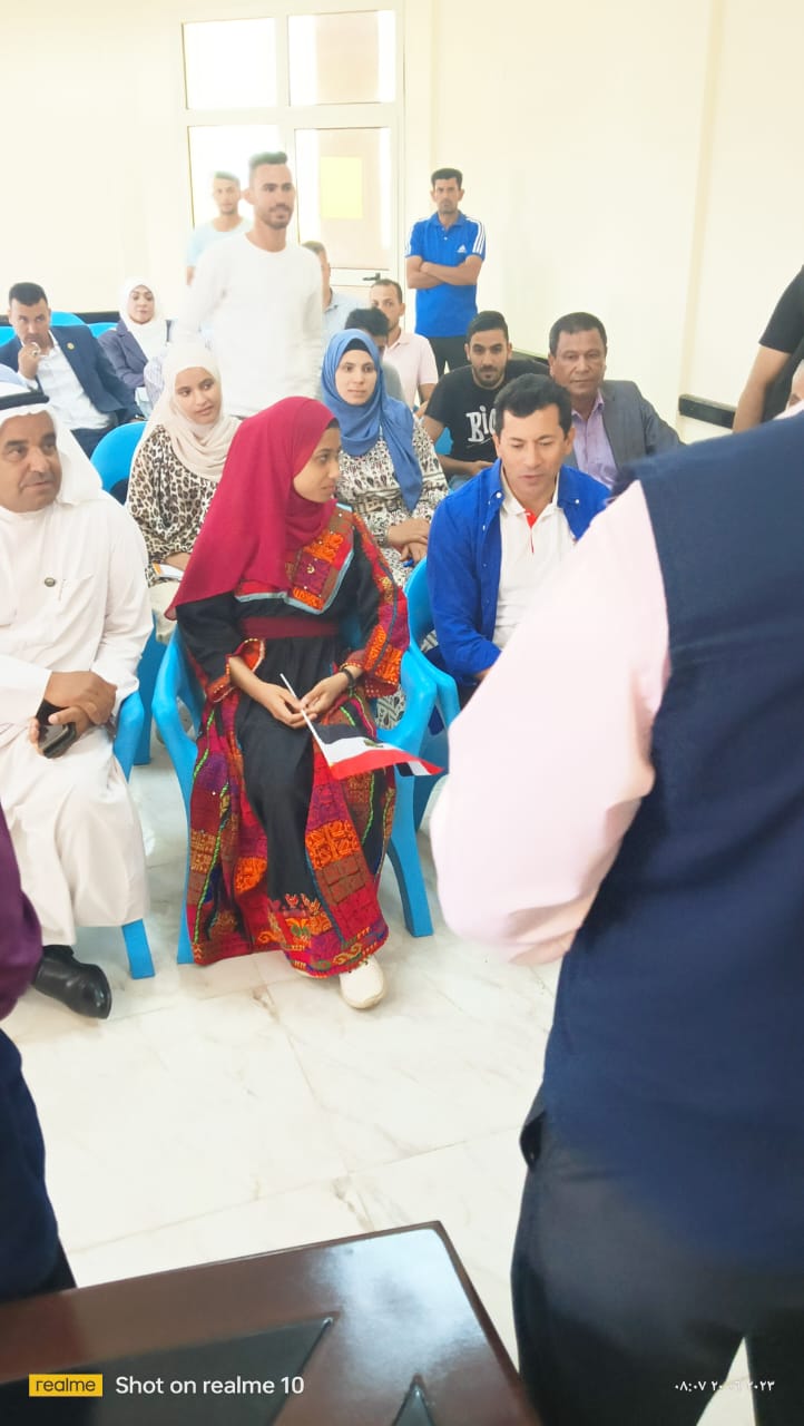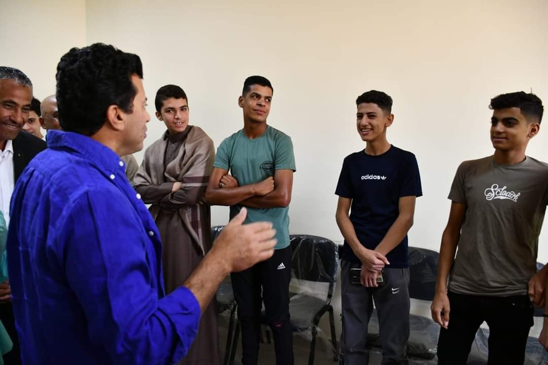 جاء ذلك ضمن الزيارة التفقدية التي يقوم بها وزير الشباب والرياضة لمحافظة شمال سيناء، لافتتاح عدد من الأندية ومراكز الشباب المطورة برفقة عدد من القيادات التنفيذية بمحافظة شمال سيناء، ولفيف من قيادات الوزارة وهم نجوي صلاح رئيس الإدارة المركزية لتنمية الشباب، منال جمال وكيل الوزارة رئيس الإدارة المركزية لتمكين الشباب، والدكتور عمرو حداد مساعد الوزير للتنمية الرياضية، الدكتور أشرف البجرمي رئيس الإدارة المركزية للمنشآت الشبابية والرياضية، الدكتور محمد عبد القادر رئيس الإدارة المركزية لمراكز الشباب والهيئات الشبابية، نانيس الناقوري مدير عام الإدارة العامة للمبادرات الشبابية، جيهان رشوان مدير عام الإدارة العامة لريادة الأعمال والمشروعات الناشئة.