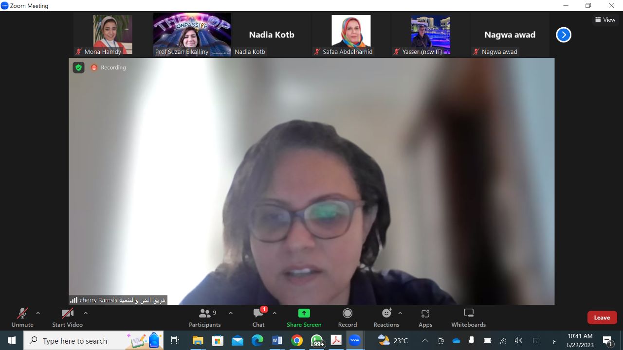 و عرضت الدكتورة سوزان قليني تقرير رصد دراما رمضان 2023 وجهود اللجنة فى وضع الكود الاعلامى لصورة المرأة التى يتم تناولها فى كل وسائل الاعلام والنجاح الذى حققه المرصد فى السنوات الأخيرة من تحسين الصورة المسيئة للمرأة فى الاعلام والقوة فى توجيه صناع الدراما نحو قضايا تهم المرأة منها قوانين الخلع والوصاية.