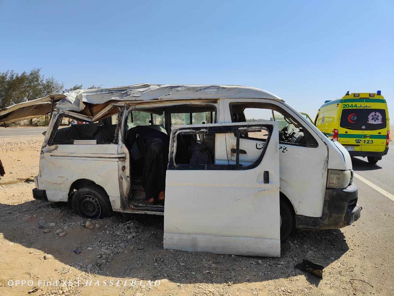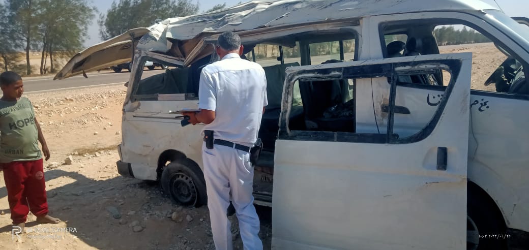 إصابة 3 أشخاص إثر انقلاب ميكروباص على صحراوي قنا