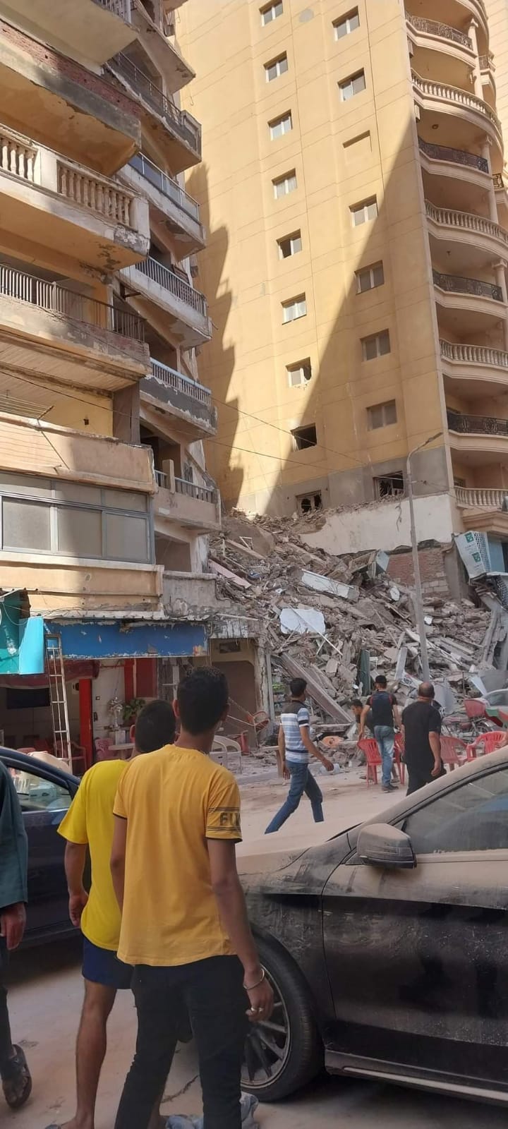 انهار منذ قليل عقار في شارع خليل حمادة في الإسكندرية مكون من 13 طابقا بحي المنتزه أول، ما أسفر عن تحطم سيارات تصادف وقوفها أسفله، وجار البحث عن ضحايا أو مصابين كانوا موجودين في أحد المحلات التجارية أسفله.