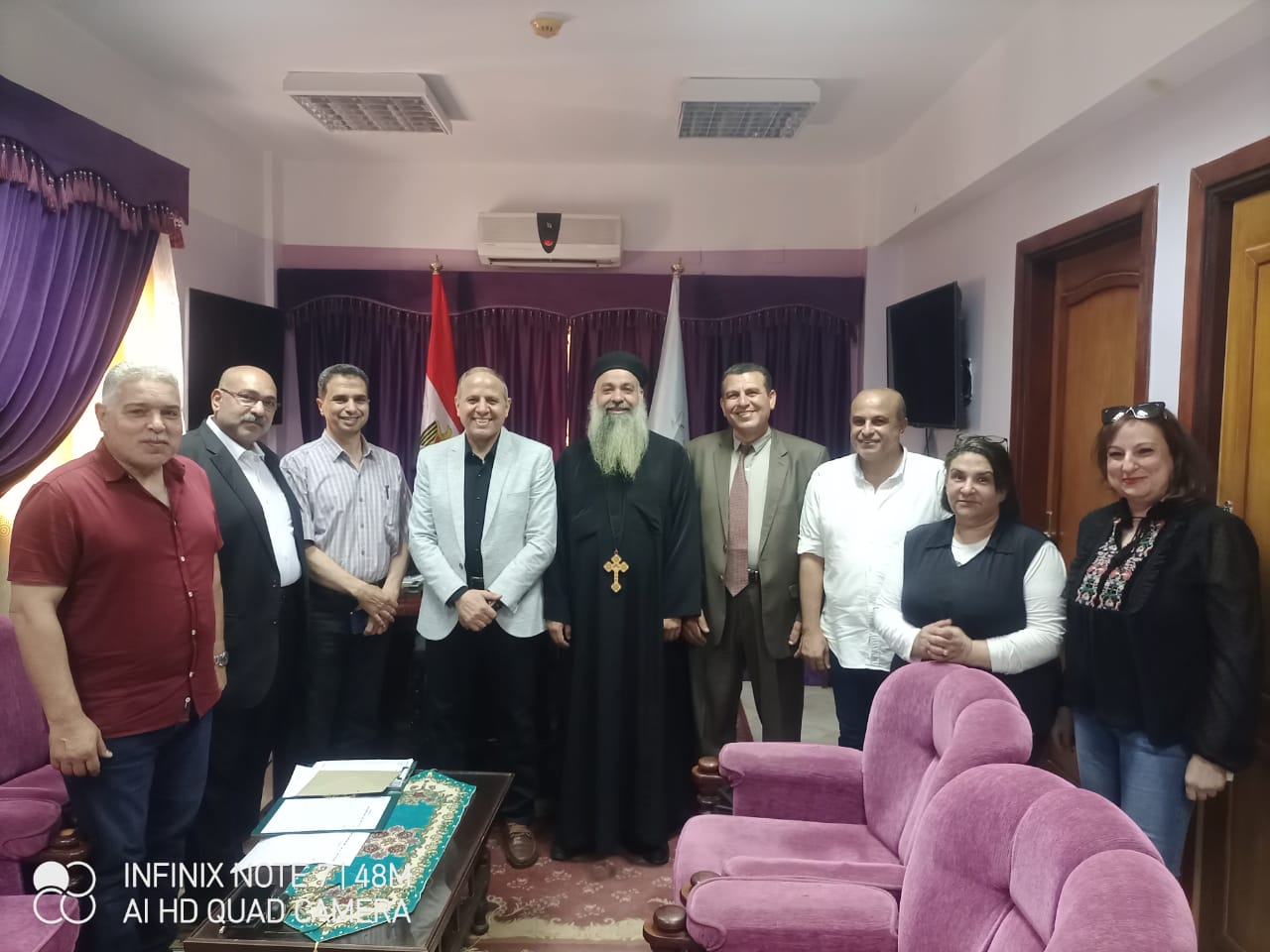 العاملون بتعليم كفر الشيخ من الاقباط ووفد كنسي يوزعون الحلوى والورود وكروت معايدة بمناسبة عيد الأضحى