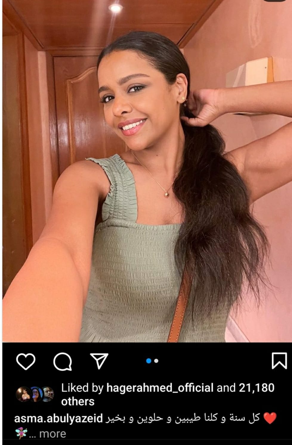نشر اسماء أبو اليزيد عدة صورة جديدة لها، ظهرت خلالها بإطلالة صيفية متميزة وبدون ميكب، وعلقت عليها:"كل سنة وانتو طيبين وحلوين وبخير".
