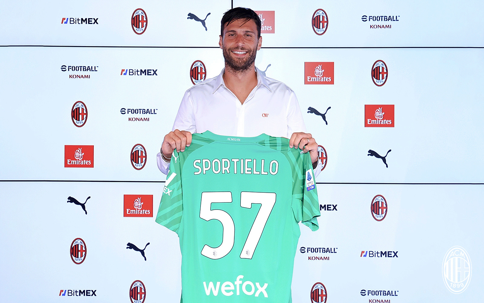 ونشر ميلان بيانا رسميا أكد فيه التعاقد مع حارس المرمى الإيطالي، كما سيرتدي سبورتييلو القميص رقم 57 مع ميلان، ومن المتوقع أن يكون حارسا بديلا للفريق في وجود مايك ماينان.