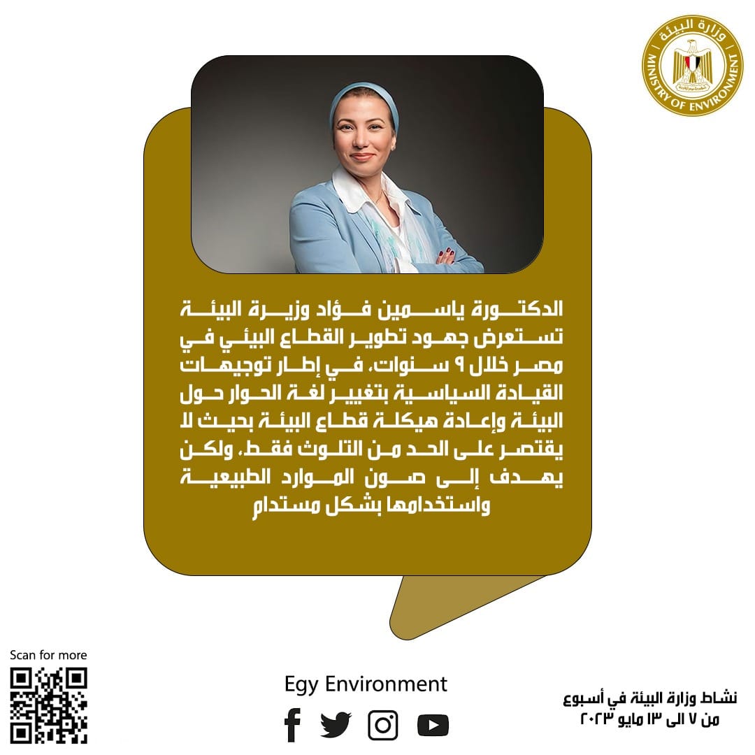 الدكتورة ياسمين فؤاد وزيرة البيئة، تستعرض تقريرا مفصلا حول جهود تطوير القطاع البيئي في مصر خلال 9 سنوات