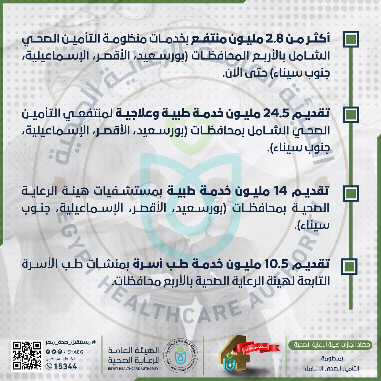 حصاد هيئة الرعاية الصحية بمنظومة التأمين الصحي الشامل خلال 4 أعوام (إنفوجراف)