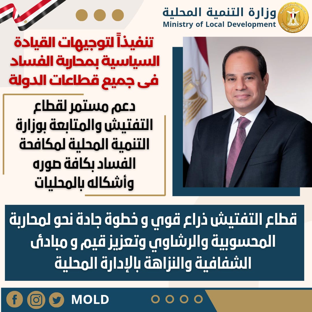 دعم مستمر لقطاع التفتيش والمتابعة بوزارة التنمية المحلية لمكافحة الفساد بكافة صوره وأشكاله بالمحليات