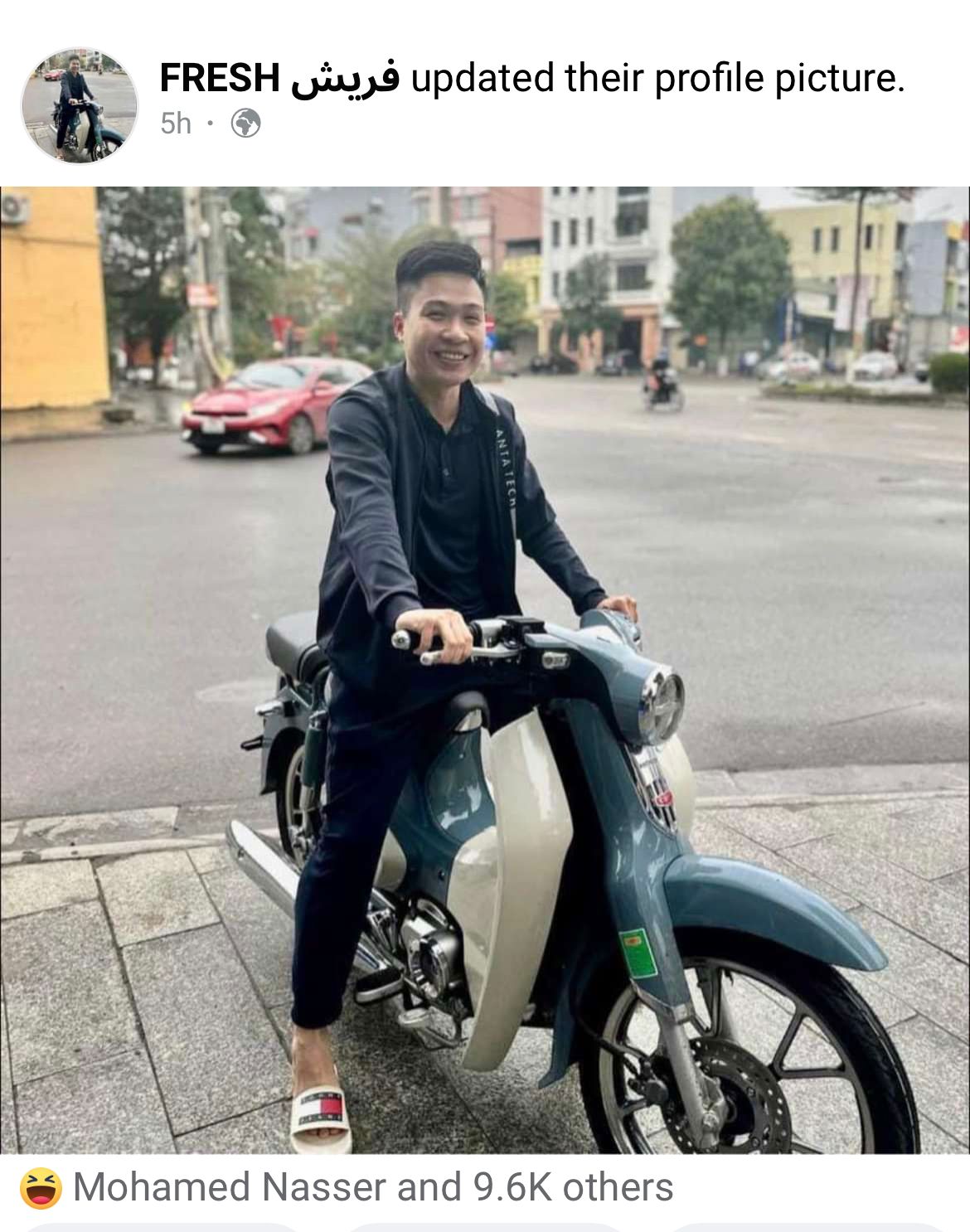 وقام الشخص بتغيير الصورة الشخصية للصفحة، واستبدالها بصورة له وهو يجلس علي أحد المتوسكلات.