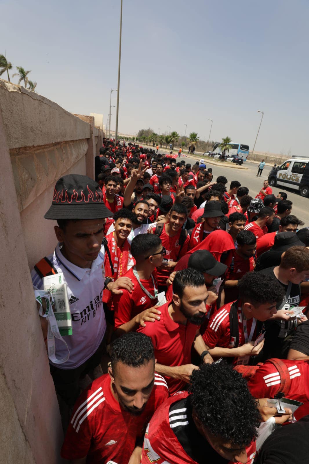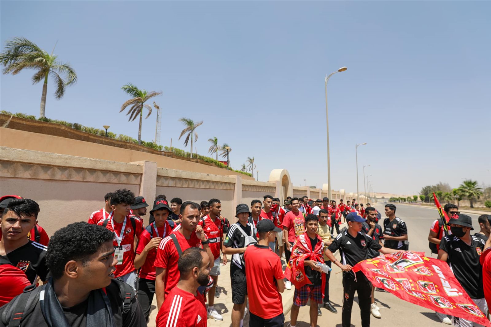 ونشرت الصفحة الرسمية للنادي الأهلي عبر موقع التواصل الإجتماعي "فيسبوك"، صوراً لجماهير المارد الأحمر التي تزين شوارع الإسكندرية معلقين: "وراك فين ما تروح".