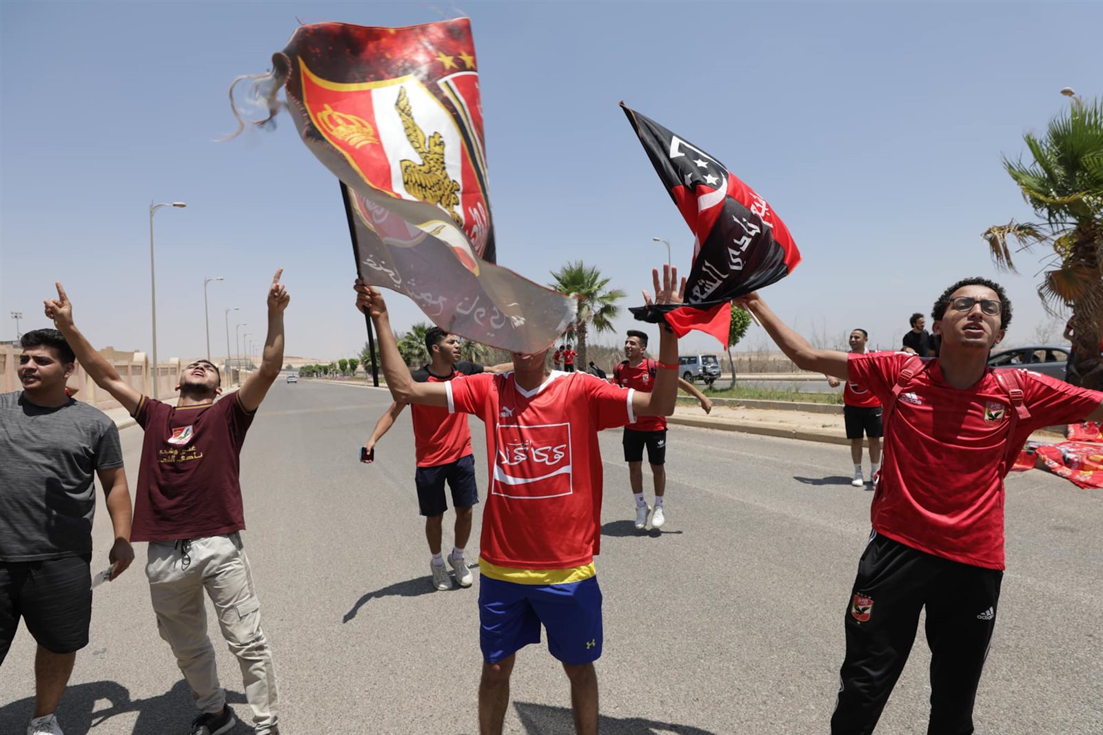 "وراك فين ما تروح".. جماهير الأهلي تتوافد على استاد "برج العرب" بالإسكندرية