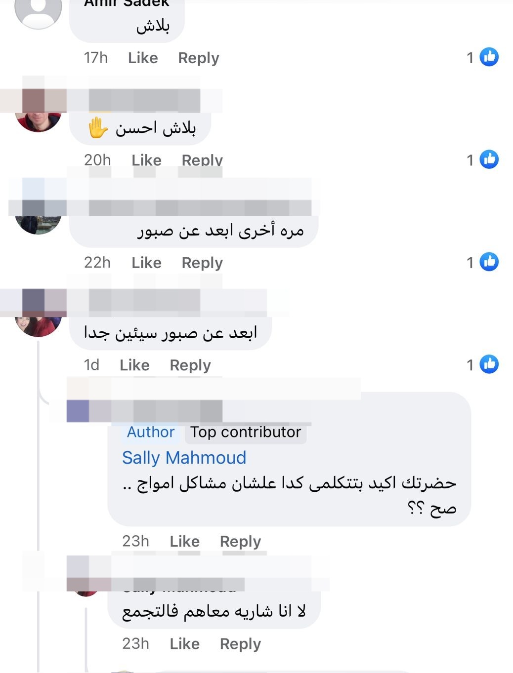 وانهالت عليه التعليقات المحذرة من التعامل مع شركة صبور لمشاكلها الكثيرة فقال أحد المواطنين ،" اشتريت منهم في مشروع زويا الساحل الشمالي و لم اتسلم حتي الان و الموضوع في القضاء الان"، وقالت أخري " ابعد عن صبور سيئين جدا"، وقال أخر،" بصراحة ابعد عن صبور خدمة ما بعد البيع سيئة و لك فى قرية امواج عبره بعد البيع بيحولها الى البقرة الحلوب".