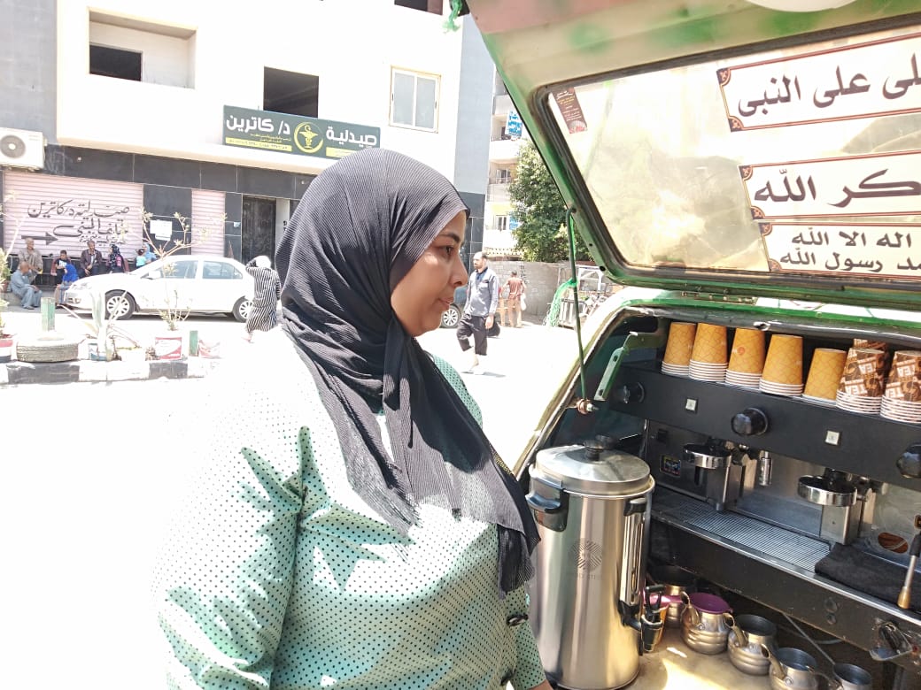 في البداية قالت منال محمدين ابنة الـ 40 عاما، متزوجة ولديها 5 أبناء فى مراحل التعليم المختلفة، "راودتنى فكرة عمل الكافيه المتنقل “وهو عبارة عن سيارة بيجو وبداخله مكنة لعمل القهوة والمواد الخام مثل السكر، والبن، والكوفي مكس والشاى، والماء وحوض بسيط لغسل الإناء الذي نحضر به القهوة منذ عام حيث رأيت هذا المشروع فى إحدى القنوات، وقررت التنفيذ أعترض بعض أفراد أسرتى، لكن زوجى لاقى ذلك بالموافقة والترحيب والتشجيع”.