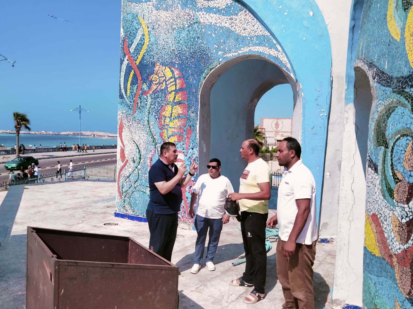 كما تابع عبد المجيد ميدانياً أعمال رفع كفاءة النافورة الراقصة والمساحات الخضراء بمنطقة الشراع كأحد اهم الميادين علي كورنيش المدينة ، حيث سيتم زراعة نباتات الزينة من خلال إدارة التشجير بمجلس المدينة.