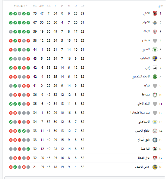 ترتيب الدوري قبل مباراة المصري ضد فاركو اليوم.. الأهلي يتصدر