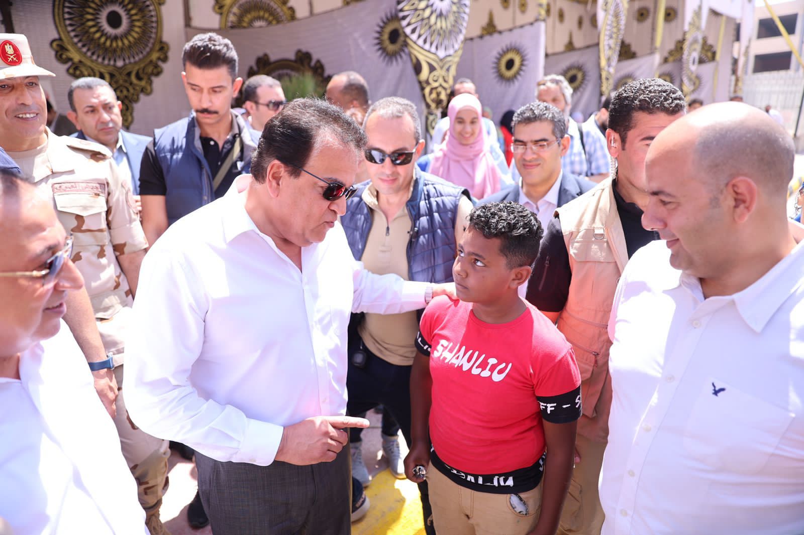 واستكمل «عبدالغفار» أن الوزير، تابع ندوات التوعية الصحية المخصصة للأطفال، مشيدًا بجهود الفرق الصحية وفرق التوعية، كما اطمأن على التواجد الكامل لكافة الفرق الطبية، بمختلف التخصصات، واطمئن على توافر مخزون الأدوية والمستلزمات الطبية، موجهًا بالبدء في وضع خطة لإنشاء مركز ووحدة صحية لساكني (بشاير الخير)، كما حرص على التحدث مع المواطنين للتأكد من حصولهم على الرعاية الصحية والعلاجية على الوجه الأكمل، وبالمجان.