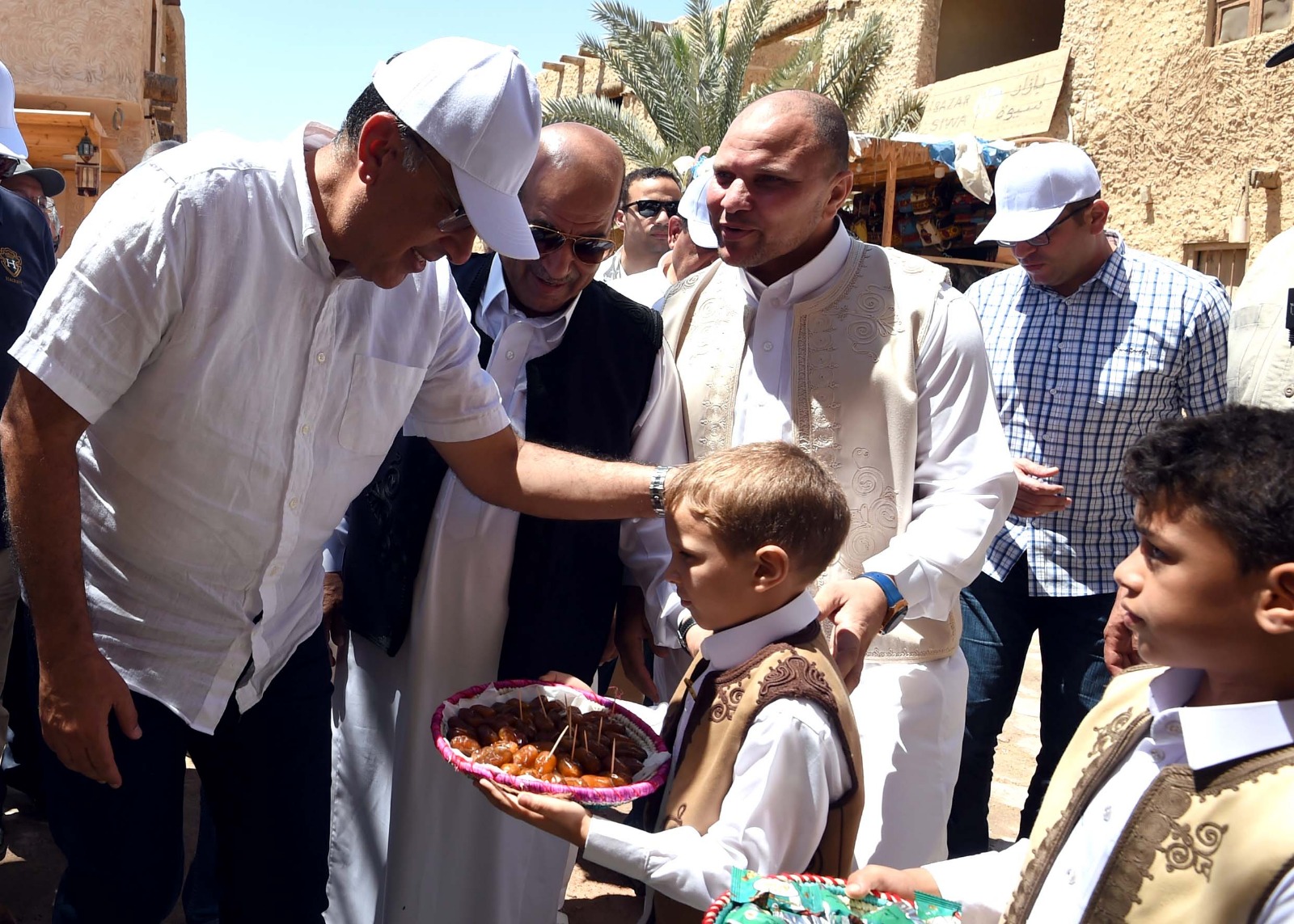 بالحلويات.. أطفال سيوة يستقبلون رئيس الوزراء.. وأصحاب المحال يشكرون الرئيس على تطوير الواحة