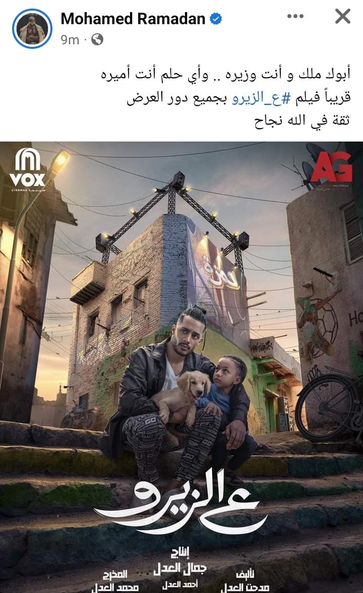 وظهر محمد رمضان خلال البوستر وهو برفقة الطفل منذر مهران ويجلسان على أحد السلالم برفقة كلبهما.