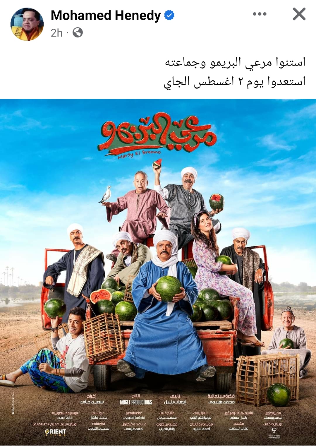 ونشر محمد هنيدي البوستر الرسمي للفيلم عبر حسابه بموقع التواصل الاجتماعى "الفيسبوك" وعلق:" استنوا مرعي البريمو وجماعته استعدوا يوم 2 اغسطس الجاي".