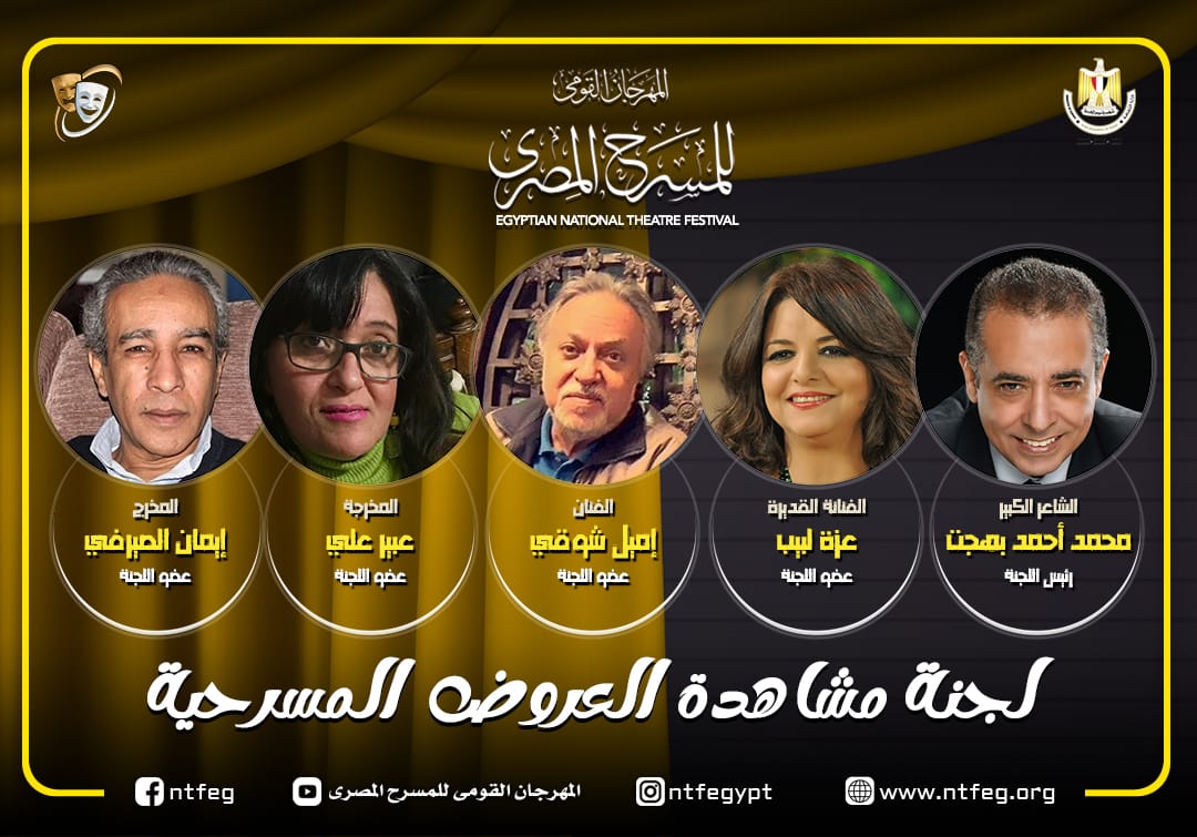 وتكونت لجنة مشاهدة واختيار العروض بالمهرجان القومي للمسرح المصري في الدورة الـ 16، من الناقد والشاعر محمد بهجت رئيسًا، وعضوية الفنانة القديرة عزة لبيب، المخرج إميل شوقي، المخرجة عبير علي، الفنان إيمان الصيرفي، ومقرر اللجنة أُمي علي ماهر.