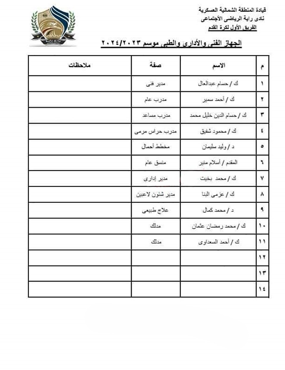 نادي رايه كفر الدوار يعلن تشكيل اسماء الجهاز الفني للموسم الجديد