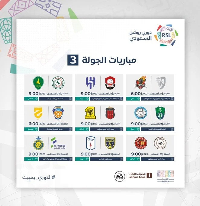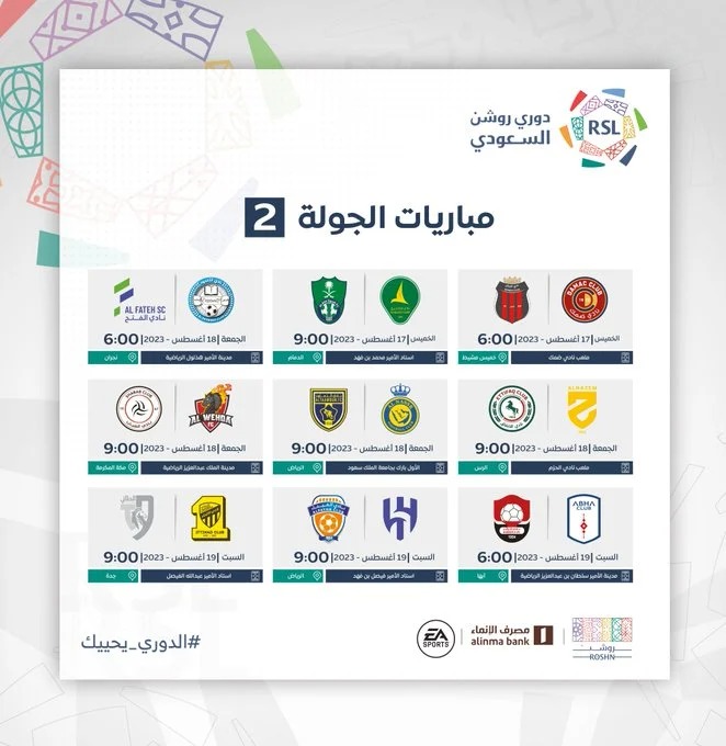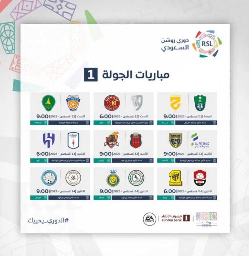 مواعيد مباريات الجولة الأولى لدوري روشن السعودي 2024