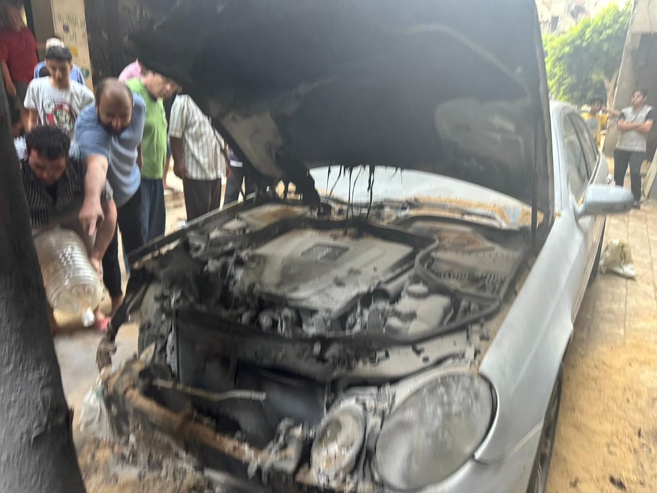 اشتعال النيران في سيارتي المستشار عصام رفعت أمام منزله بالهرم