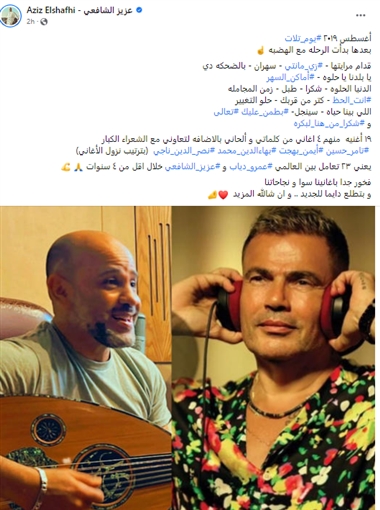 استعرض الملحن عزيز الشافعي رحلته مع الفنان عمرو دياب منذ عام 2019 معبرا عن سعادته بتلك الرحلة وهذه النجاحات.