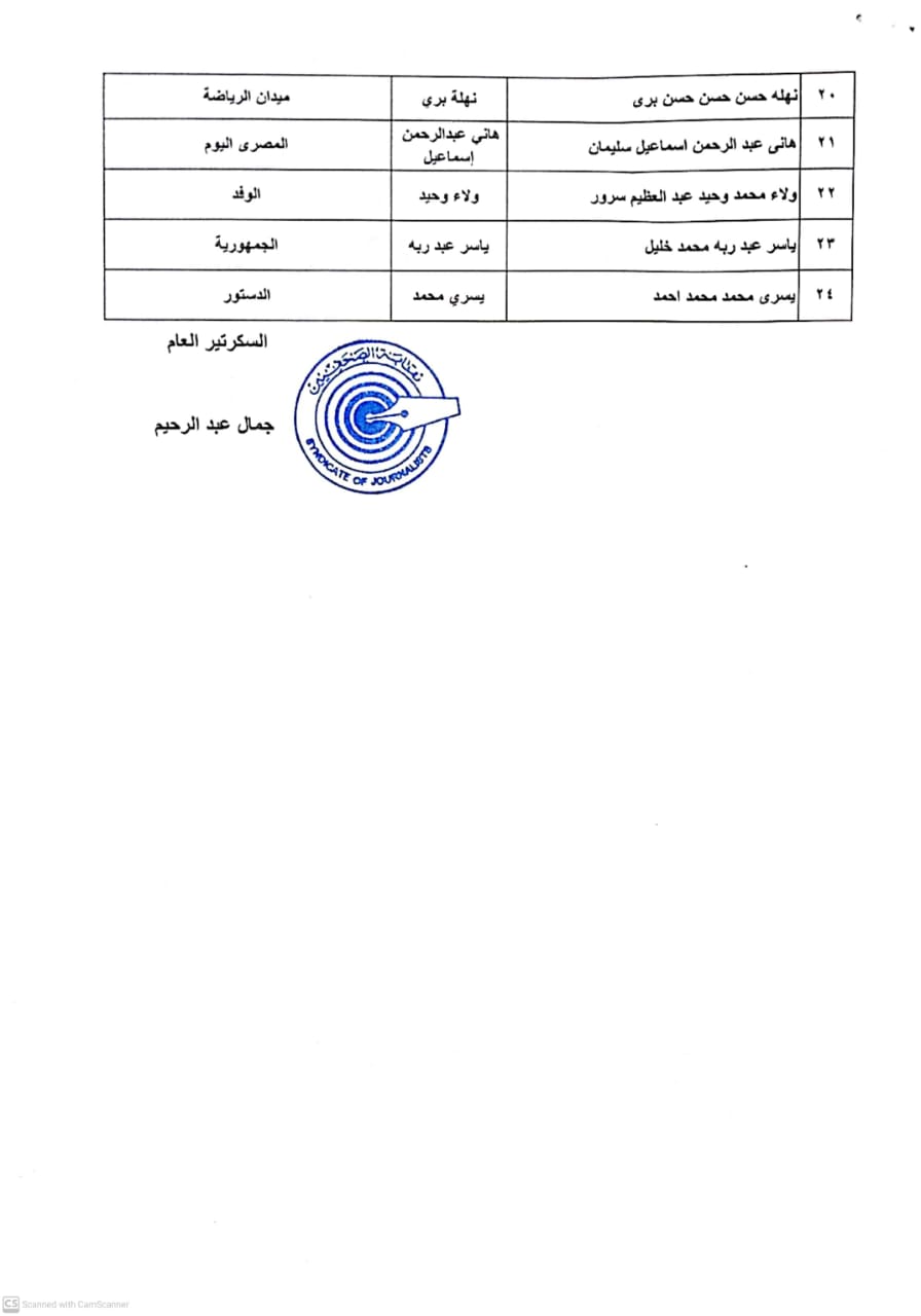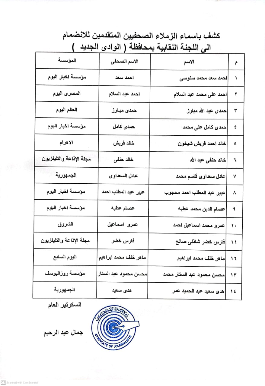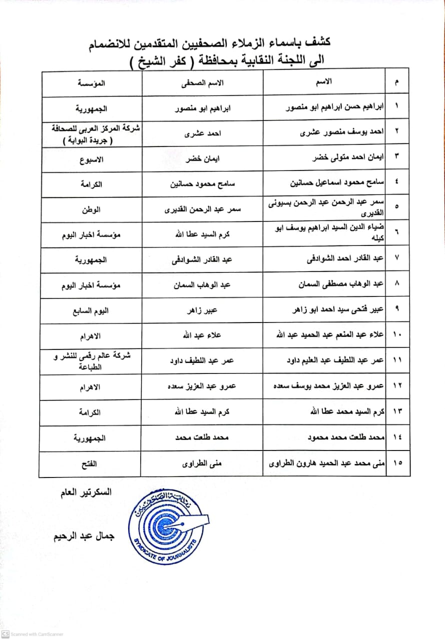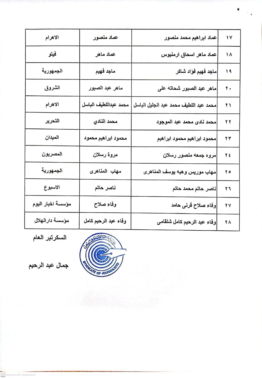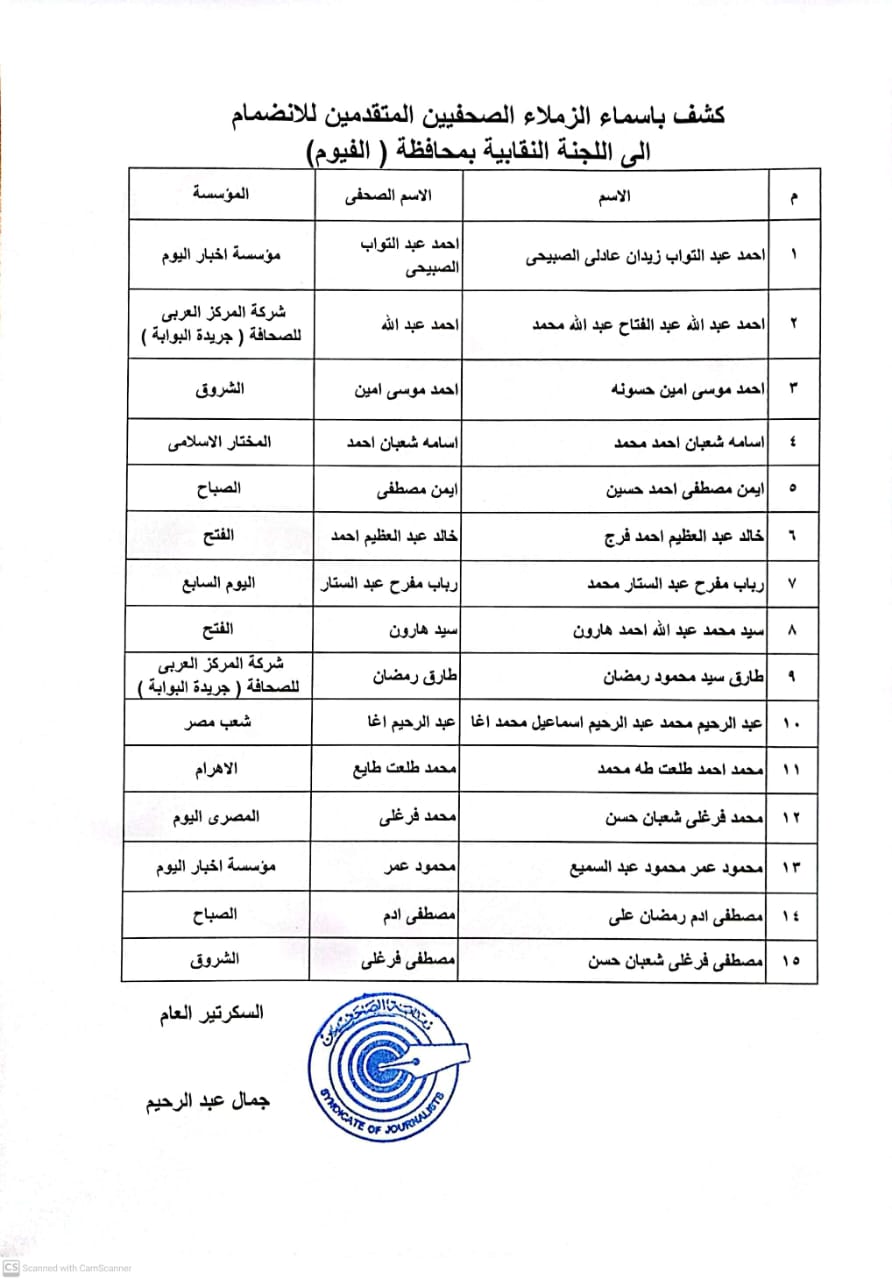 وأعلن جمال عبدالرحيم سكرتير عام النقابة أن مجلس النقابة سوف يحدد في وقت لاحق المواعيد المناسبة لاختيار رؤساء وأعضاء اللجان النقابية في المحافظات التي تقدمت بطلبات لتشكيل لجان فرعية بها وعددها 14 محافظة.