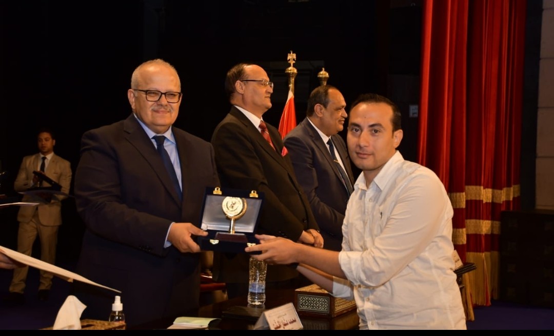 وتسلم الزميل "شريف عبدالعليم" درع الجامعة من الدكتور محمد عثمان الخشت رئيس جامعة القاهرة، وبحضور نواب رئيس الجامعة وعمداء الكليات، ومجلس إدارة مستشفيات قصر العيني، والصحفيين، وممثلى وسائل الإعلام المختلفة.