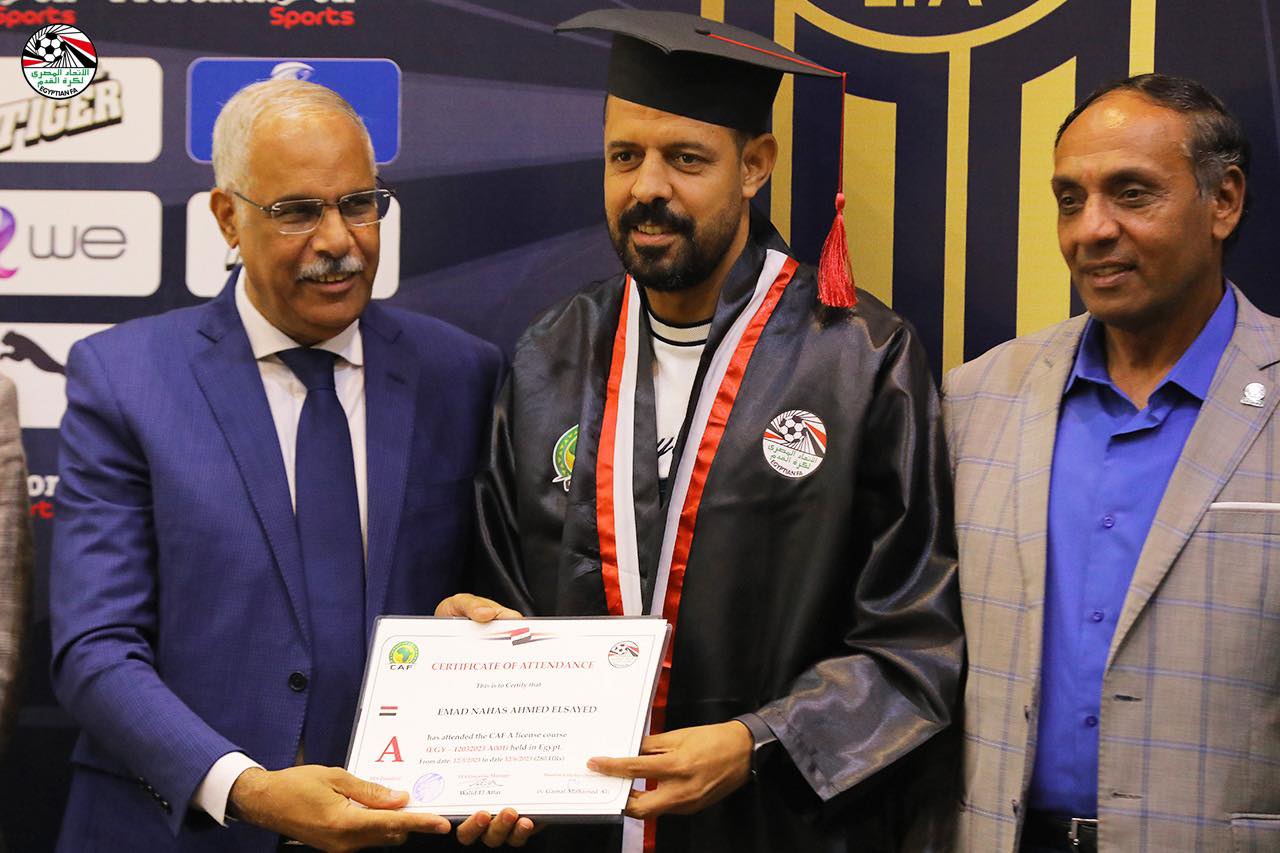 وفى ختام المراسم ، قام جمال علام و أعضاء مجلس ادارة الاتحاد على تسليم المدربين شهادة الحصول على الدبلومة الأفريقية A، والتقاط صور جماعية مع جميع المدربين و عددهم 25 مدربًا ومدربة ، هم عبد الظاهر السقا و علي ماهر ومحمد عبد الكريم ووائل رياض ومجدي عبد العاطي وعادل مصطفى وأمير عبد العزيز وعبد الباقي جمال وأحمد عبد المقصود وأمير عمر النور وخالد علي ووليد سليمان وعمر إسلام ومحمد سعد وإسلام يوسف وأحمد عبده وخالد جلال وأميرة محمد وطارق سليمان وطلعت محرم وأحمد أيوب وعماد النحاس وميرهان يحيى ومحمد كمال ومصطفى لطفي.