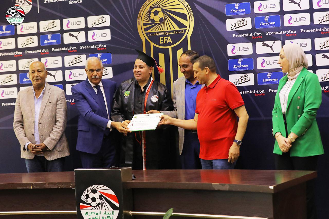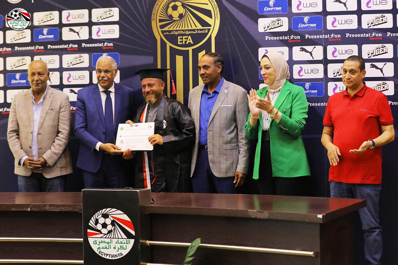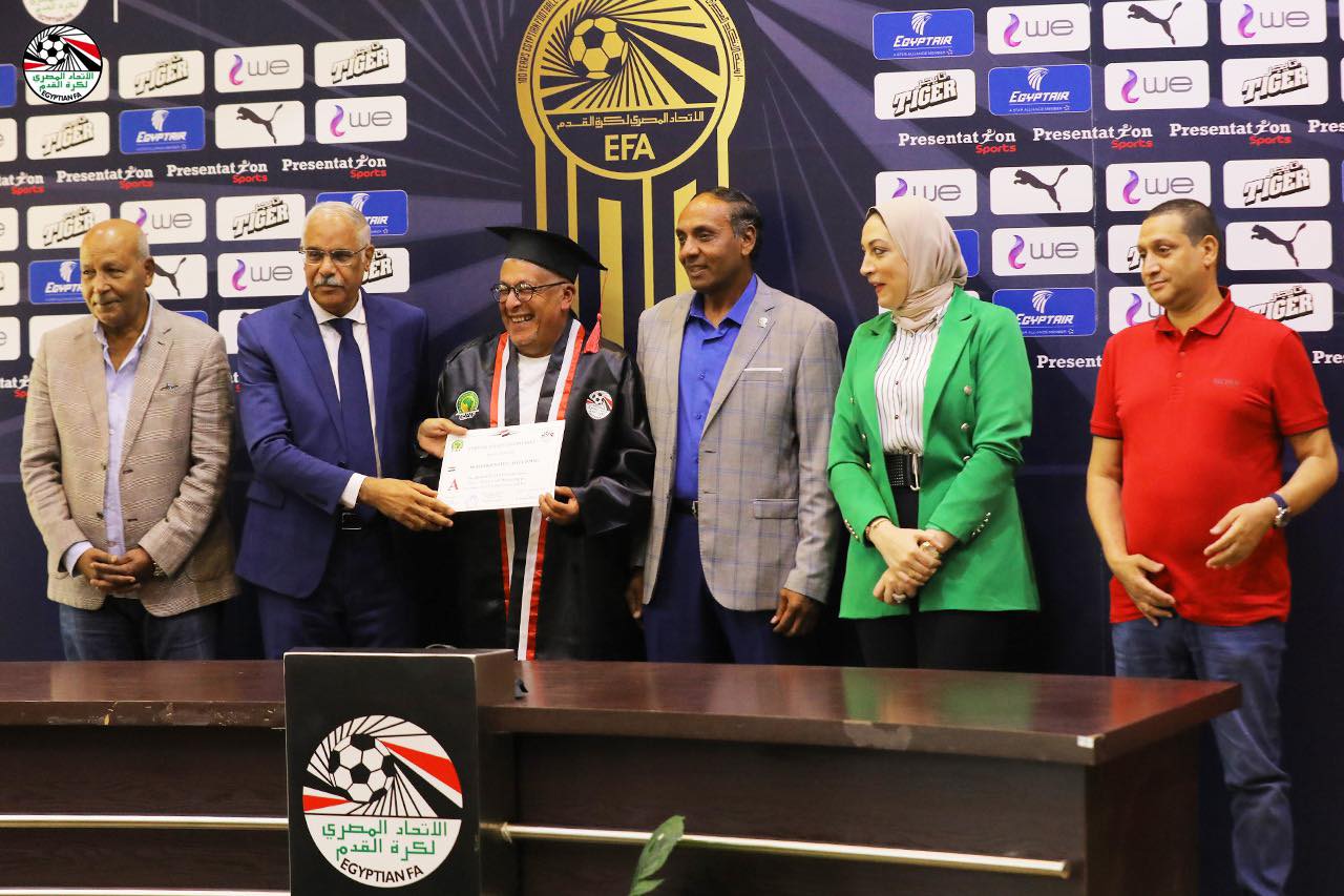 شهد الاتحاد المصرى لكرة القدم، اليوم الثلاثاء، مراسم تخرج مدربي الدبلومة الأفريقية (A)، بحضور جمال علام رئيس الاتحاد واللواء محمد حلمى مشهور محمد أبو الوفا والدكتورة دينا الرفاعى أعضاء المجلس، والدكتور جمال محمد على مدير إدارة المدربين بالاتحاد، فتحى نصير مدير إدارة القطاعات عبد المنعم شطة المحاضر الدولي والمدير الفني السابق للكاف.