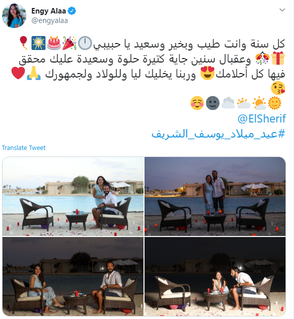خطفت إنجي علاء زوجة الفنان يوسف الشريف الأنظار في احتفالها بعيد ميلاده على مواقع التواصل الاجتماعي، حيث نشرت إنجي صورا جديدة عبر حسابها الرسمي على موقع "تويتر" احتفالها بعيد ميلاد يوسف الشريف الـ42، والموافق يوم 14 سبتمبر، في أجواء رومانسية على ضوء الشموع، والورود الموضوعة على الرمال.