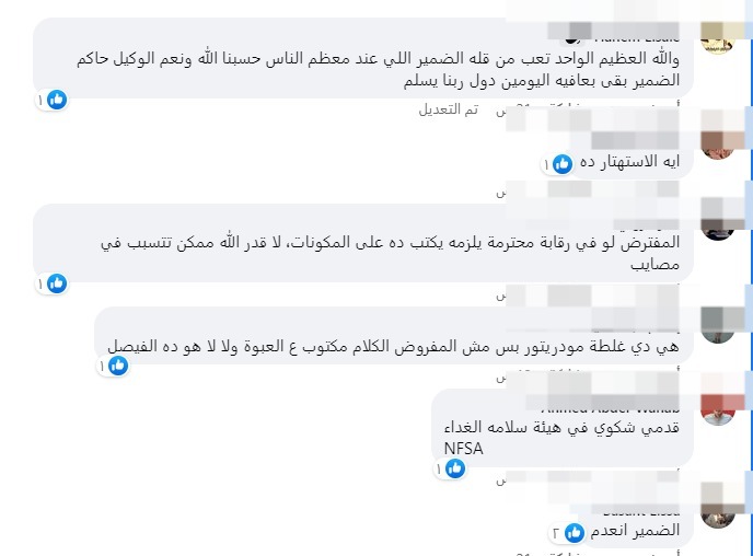 وطالبها عدد كبير من المتابعين والامهات بتقديم شكوي لسلامة الغذاء ووزارة الصحة وخدمة الشكاوي بمجلس الوزراء حرصا على حياة الأطفال واصفين الامر بإنه اهمال وتلاعب بحياة المواطنين.