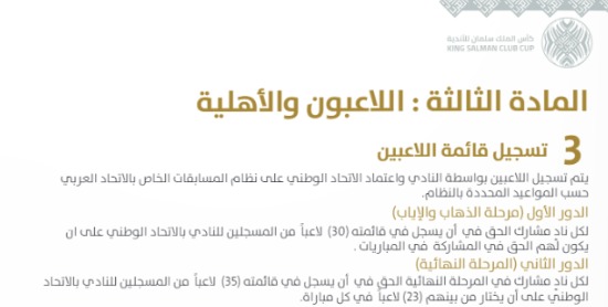 وكانت اللائحة القديمة تسمح للأندية بتسجيل 30 لاعبا من المسجلين في الاتحاد الوطني، على أن يتم اختار 23 لاعب فقط قبل انطلاق البطولة ب48 ساعة.