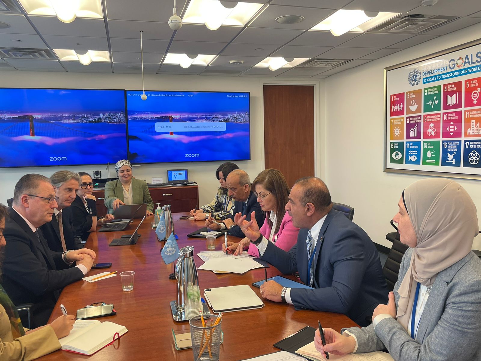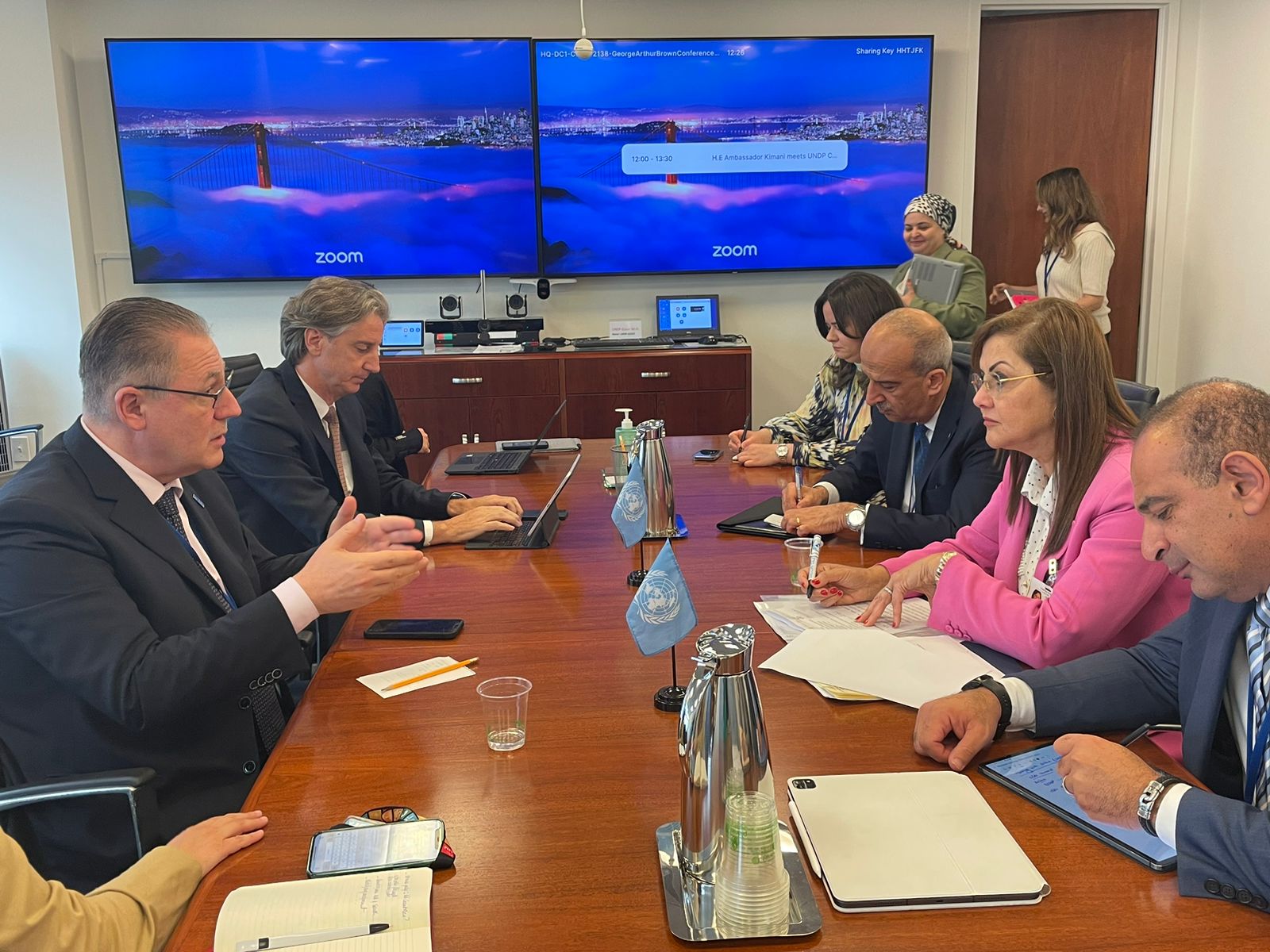 حضر اللقاء الدكتور أحمد كمالي، نائب وزيرة التخطيط، والدكتورة منى عصام، مساعد الوزيرة لشئون التنمية المستدامة، والسفير أسامة عبد الخالق، مندوب مصر الدائم لدى الأمم المتحدة بنيويورك، والاستاذة عالية خالد، محلل سياسات اول بوحدة التنمية المستدامة بوزارة التخطيط والتنمية الاقتصادية، وأعضاء بعثة مصر الدائمة لدى الأمم المتحدة، والسيد اليساندرو فراكاستي، الممثل المقيم لبرنامج الأمم المتحدة الإنمائي في مصر.