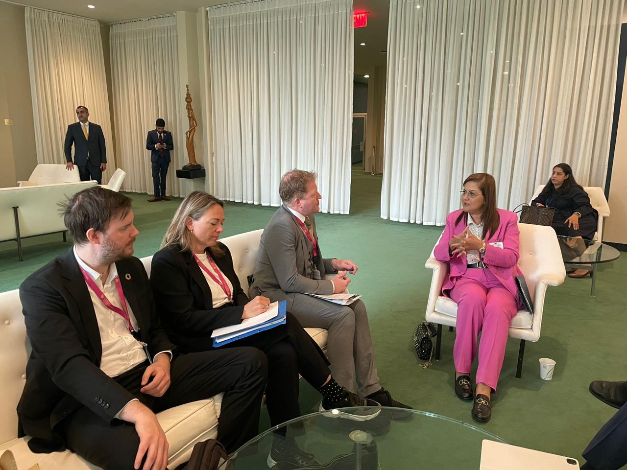 اجتمعت الدكتورة هالة السعيد، وزيرة التخطيط والتنمية الاقتصادية مع وزير الحكم المحلي والتنمية الإقليمية بالنرويج، لبحث سبل التعاون المشترك، وذلك على هامش مشاركتها في المنتدى السياسي رفيع المستوى للتنمية المستدامة (HLPF) 2023 والمنعقد بنيويورك تحت شعار "تسريع التعافي من فيروس كورونا والتنفيذ الكامل لخطة التنمية المستدامة 2030 على جميع المستويات". حضر اللقاء الدكتور أحمد كمالي، نائب وزيرة التخطيط، والدكتورة منى عصام، مساعد الوزيرة لشئون التنمية المستدامة، وعالية خالد، محلل سياسات أول بوحدة التنمية المستدامة بالوزارة، وبعثة مصر الدائمة لدى الأمم المتحدة.