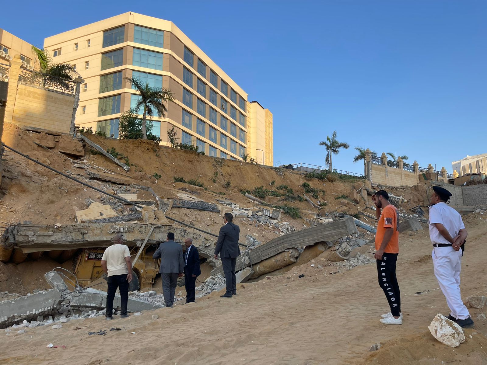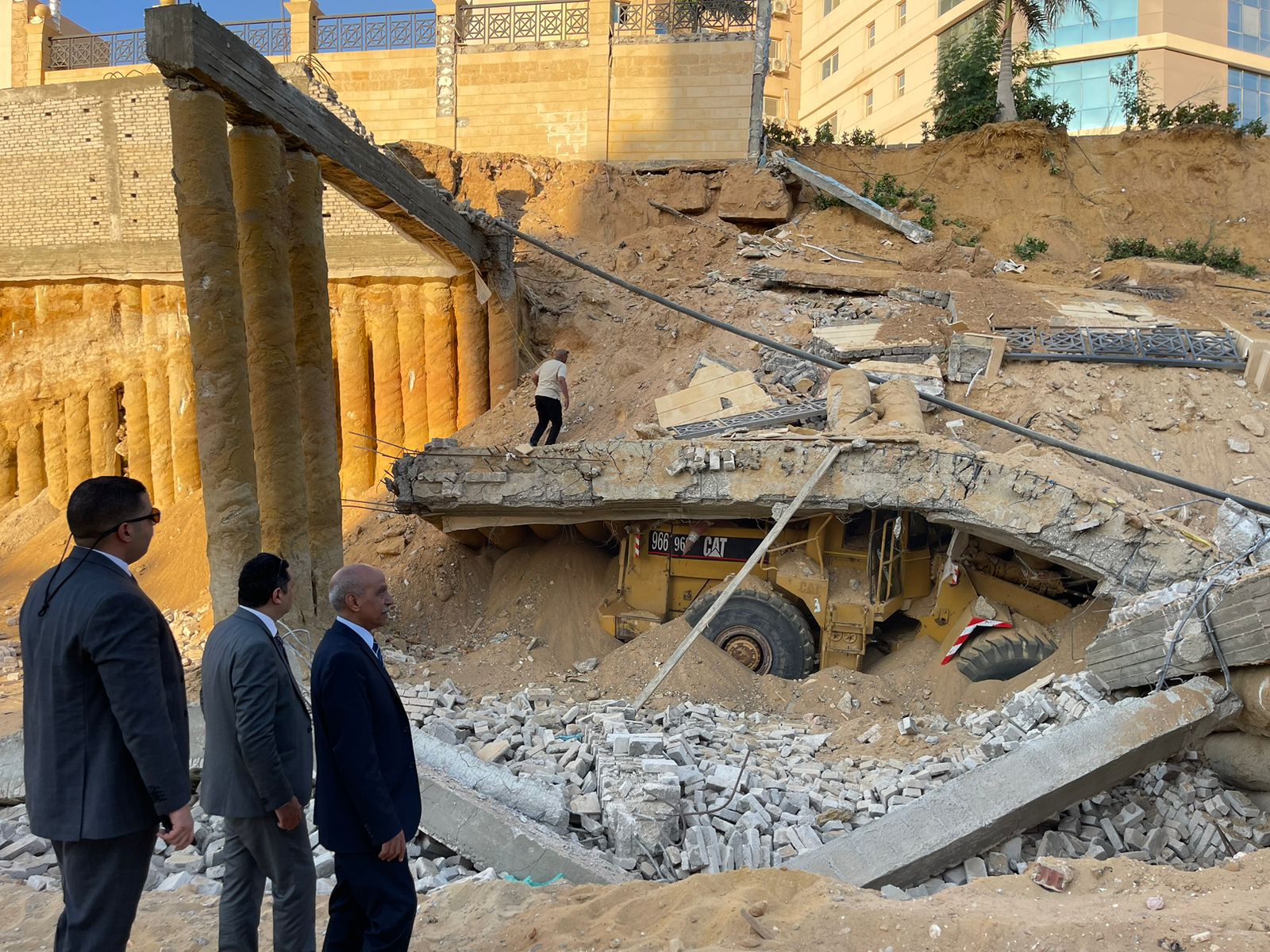 كما كشفت المعاينة عن انهيار مجموعة من الأعمدة الساندة للتربة الموجودة بقطعة الأرض الفضاء، وسقوط عدد منها على "اللودر" المتسبب في الحادث، حيث تم إخطار جهاز مدينة القاهرة الجديدة وإيقاف كافة الأعمال الإنشائية الجارية.