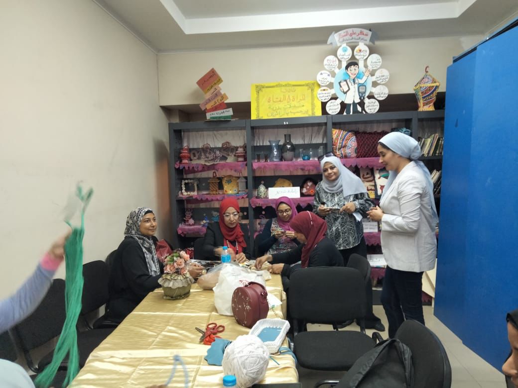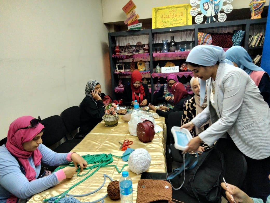 كما اقيمت ورشة للأعمال اليدوية للتدريب على عدد من الحرف اليدوية ،و تعد المعروضات من مخرجات ورش العمل التي تتفذ بأندية الفتاة بمراكز الشباب.