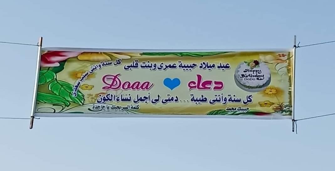 وكتب الزوج على اللافته التي تم تداولها على مواقع التواصل الاجتماعي ،" بحبك يا جاحدة .. عيد ميلاد حبيبة عمري وبنت قلبي.. كل سنة وأنتي طيبة.. ودمتي لي أجمل نساء الكون".