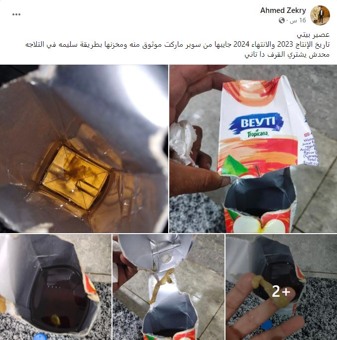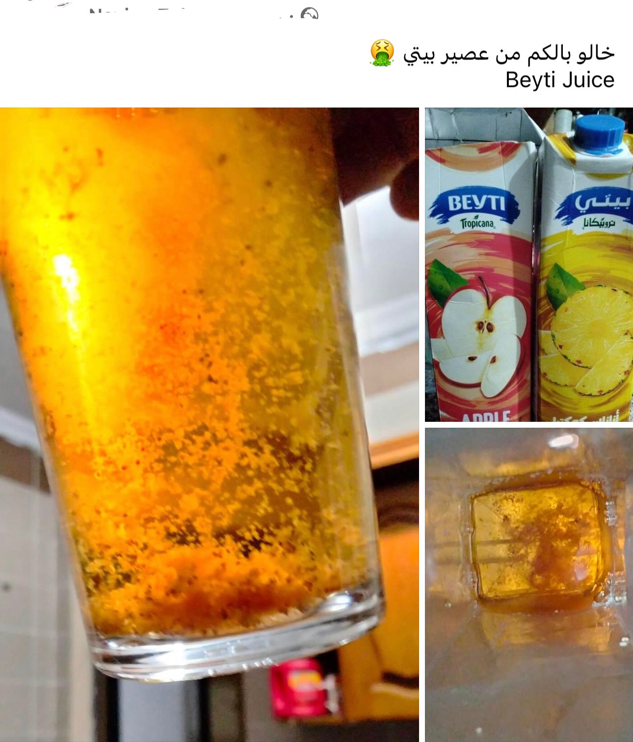 وكانت سيدة قد حذرت من قبل من شراء عصائر بيتي بعد عثورها على عفن داخل إحدي المنتجات قائلة،"خالو بالكم من عصير بيتيBeyti Juice