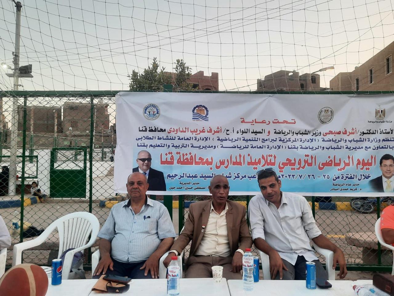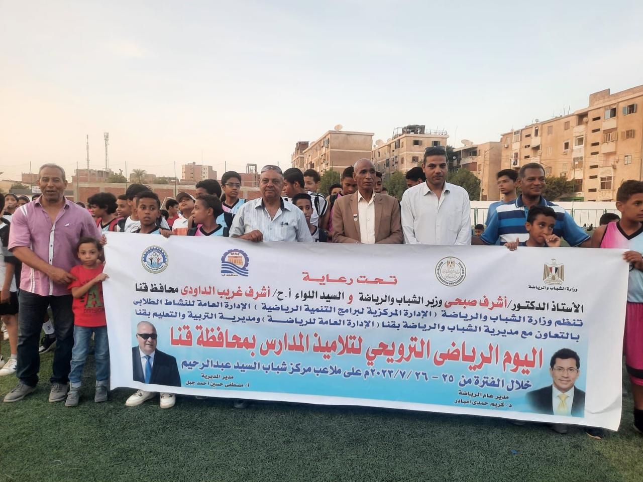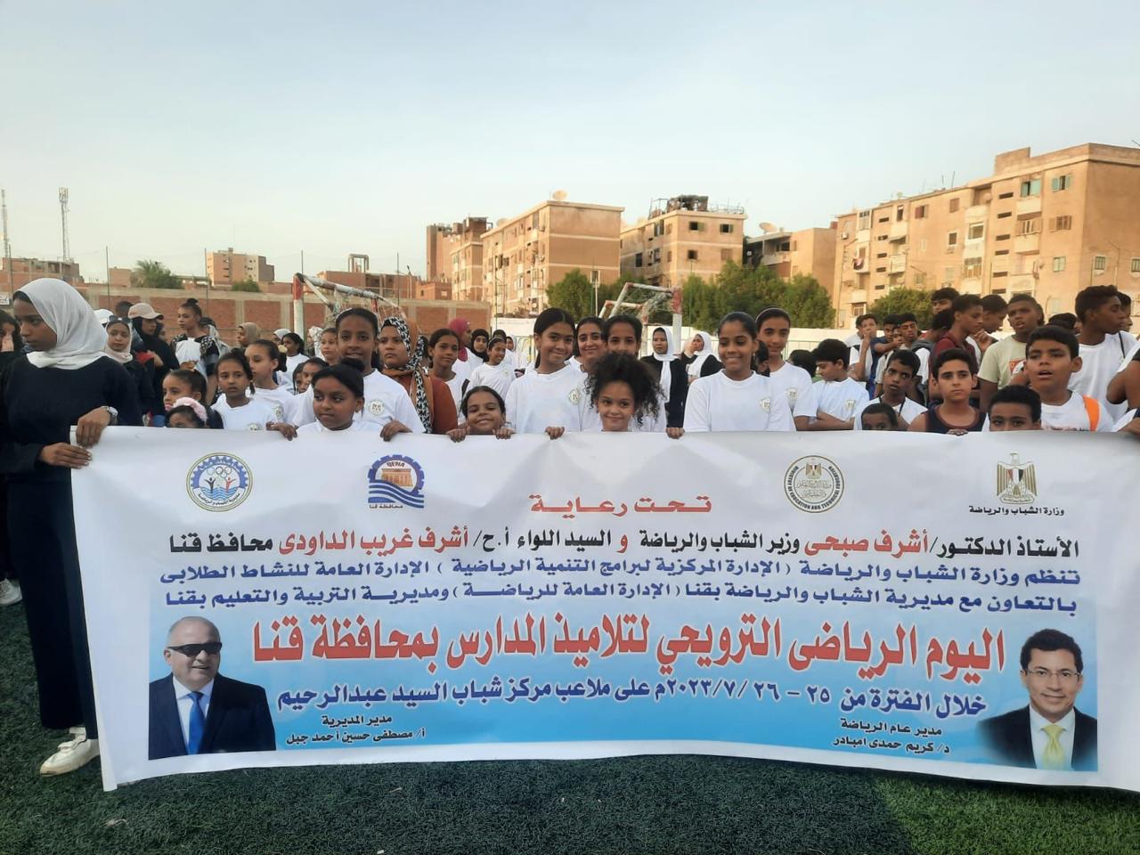 تحت رعاية الدكتور أشرف صبحي - وزير الشباب والرياضة، واصلت وزارة الشباب والرياضة من خلال الإدارة المركزية للتنمية الرياضية (الإدارة العامة للنشاط الرياضي الطلابي) تنفيذ فعاليات اليوم الرياضي الترويحي لتلاميذ المدارس بالمناطق بديلة العشوائيات، بمركز شباب عبد الرحيم بمحافظة قنا، بالتعاون مع وزارة التربية والتعليم والتعليم الفني والاتحاد المصري للرياضة المدرسية، مديرية الشباب والرياضة بالمحافظة، وذلك ضمن مبادرة "صيف شبابنا".