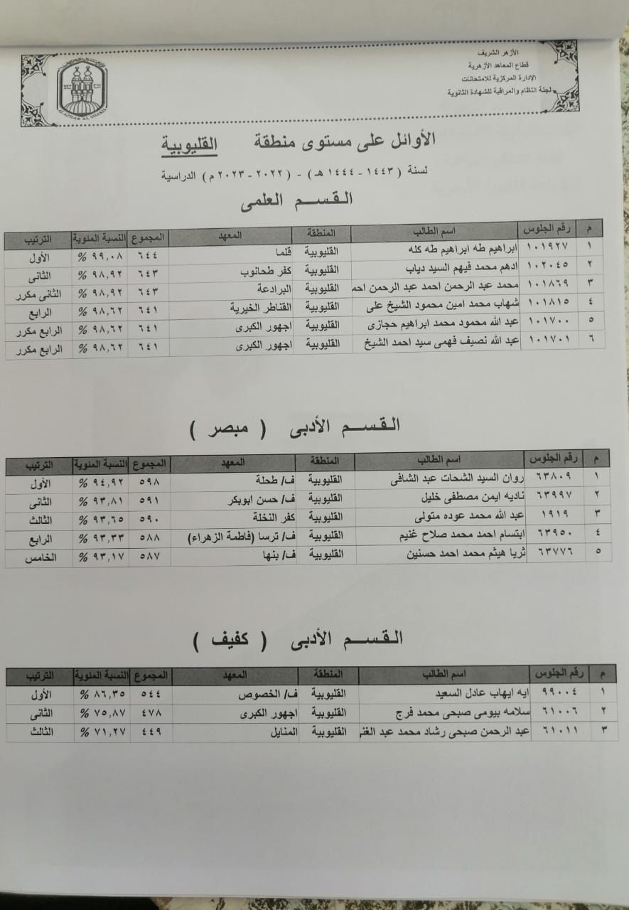ننشر أسماء أوائل الثانوية الأزهرية بالقليوبية 2023