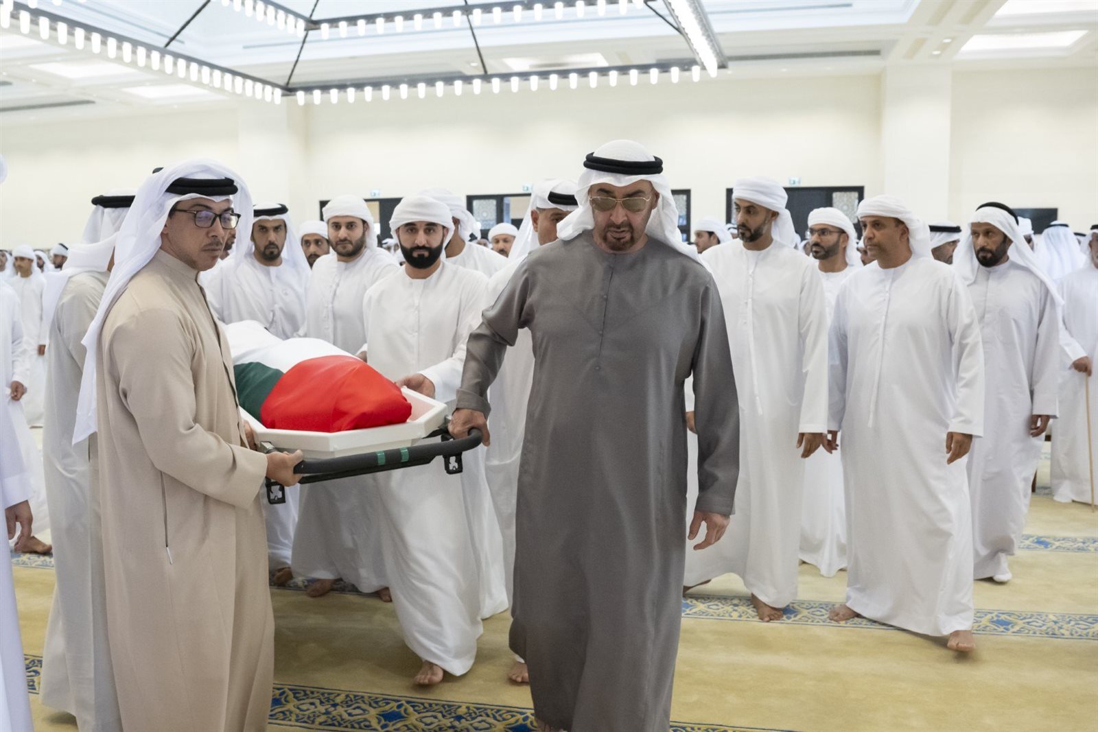 محمد بن زايد يشارك في مراسم شييع جثمان شقيق رئيس الإمارات (صور)