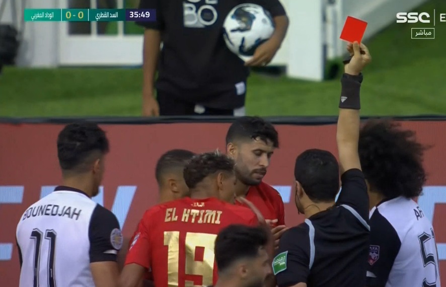 أول حالة طرد في البطولة العربية..محمود البنا يشهر البطاقة الحمراء لـ لاعب الوداد