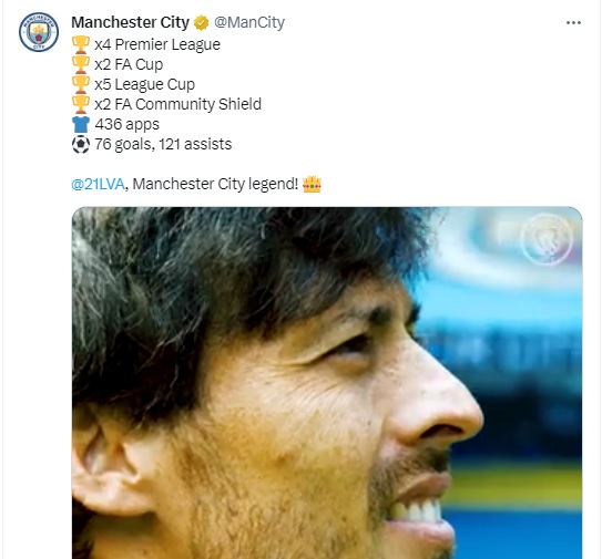 وكتب المان سيتي على الشبكات الاجتماعية "يا لها من مسيرة مدهشة. نتمنى لك الأفضل في المستقبل، أيها الساحر ديفيد سيلفا".