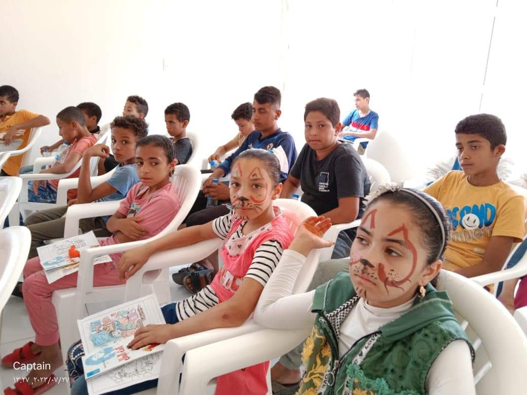 فيما تم تقسيم النشء إلى فرق لممارسة الانشطة الرياضية المختلفة وتوزيع جوائز رمزية علي الفائزين لحثهم علي المشاركة الإيجابية ، وتم توزيع النشء علي ورش عمل مع الفنانين التشكيليين لتعليمهم بعض مبادئ الرسم وتركيب الألوان واستخداماتها ، حيث قاموا بالرسم علي الوجوه .