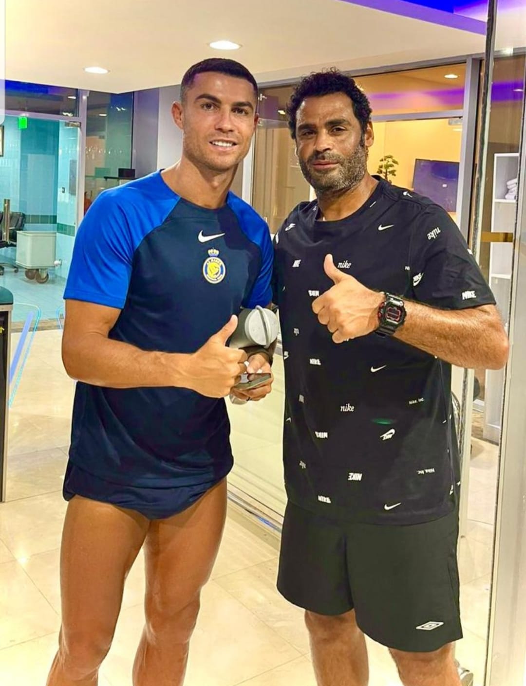 والتقت حارس مرمى الزمالك السابق صورة تذكارية مع رونالدو خلال تواجدهما في صالة الجيم لأداء بعض التمارين الخاصة.